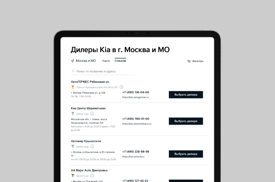 Выберите официального дилера Kia